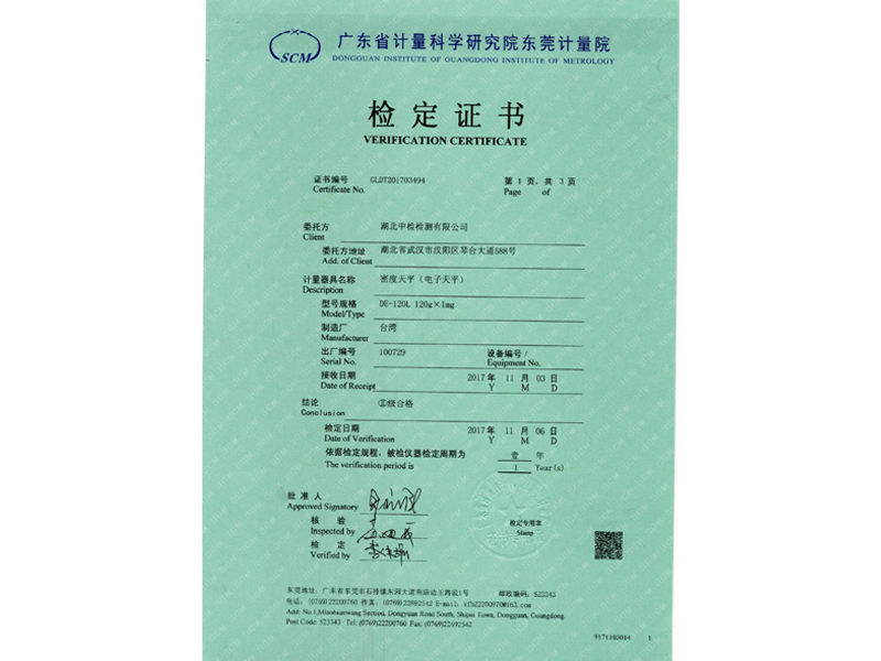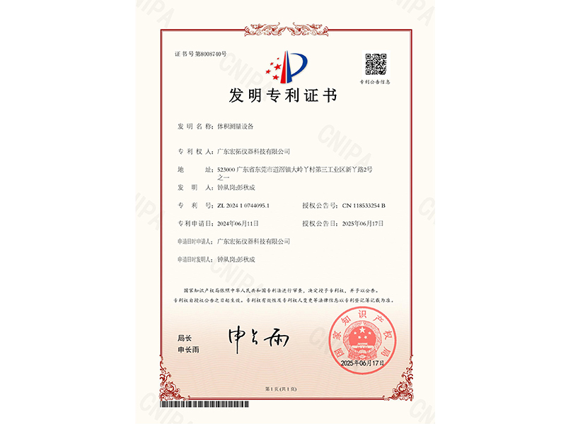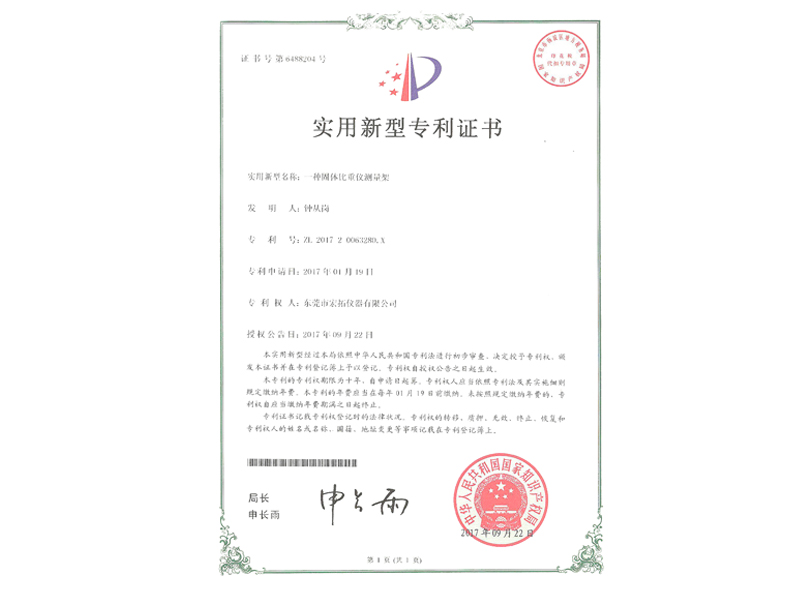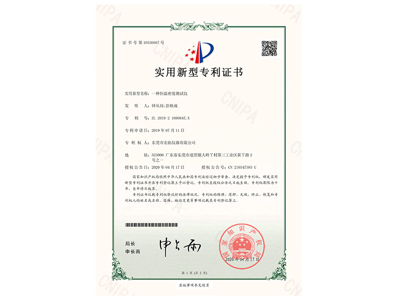 恒溫密度測試儀專利證書